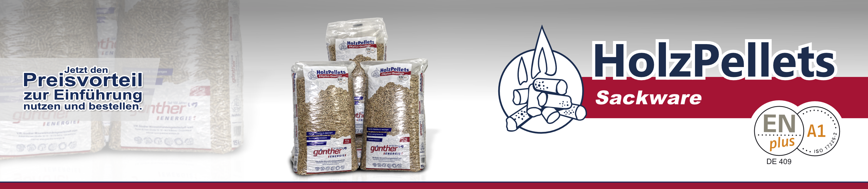 Nutzen Sie jetzt unseren attraktiven Einführungspreisvorteil und sichern Sie sich Ihre Günther Energie Holzpellets. Besuchen Sie uns und überzeugen Sie sich selbst von der Qualität unserer ENplus-A1 zertifizierten Holzpellets.